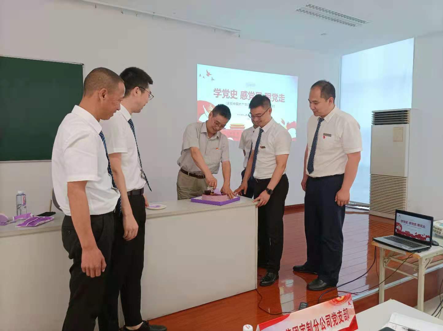 此外,公司特地準(zhǔn)備了生日蛋糕,各位黨員一起“為黨慶生”,向黨的百年華誕獻禮。