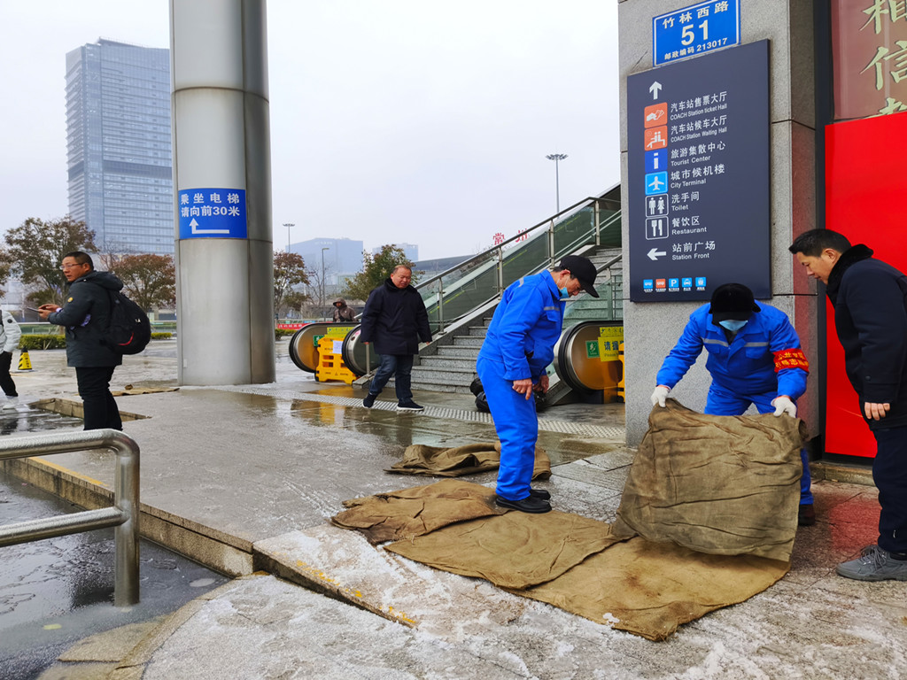 公司通過GPS動(dòng)態(tài)監(jiān)控平臺(tái)掌握營(yíng)運(yùn)車輛在途狀況,及時(shí)提醒路況信息,要求減速慢行。為預(yù)防雪后濕滑及冰凍,常州各車站組織人員在旅客進(jìn)出口處、電梯口、車輛上下坡處等重點(diǎn)結(jié)冰區(qū)域撒鹽并鋪設(shè)防滑麻袋,在進(jìn)站候車扶梯、樓梯處做好安全提醒,全力保障旅客出行安全。23日凌晨時(shí)分,公司安管人員帶隊(duì)上路上線,查看道路情況,并根據(jù)探得的道路狀況,對(duì)班次作出了調(diào)整,確保春運(yùn)期間旅客的出行安全。