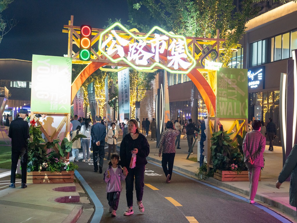 情緒引力,文旅一有盡有。街區(qū)位于“兩湖”創(chuàng)新區(qū)武高新組團(tuán),內(nèi)外交通便捷,是武進(jìn)對外交通與內(nèi)部交通的核心銜接點(diǎn);身處長三角知名產(chǎn)教城融合示范區(qū),緊鄰常州大學(xué)城、科教城。街區(qū)占地約120畝,已投資1.5億元,定位“Z世代”青年網(wǎng)紅潮集地,切中文商旅融合、夜經(jīng)濟(jì)、她經(jīng)濟(jì),通過創(chuàng)意餐飲、文創(chuàng)市集、微醺空間、日咖夜酒、潮流運(yùn)動(dòng)、藝術(shù)研學(xué)、宴會(huì)中心、網(wǎng)紅書屋、親子文娛、城市營地等多功能社交業(yè)態(tài),立足打造長三角城市微度假特色目的地與文旅新地標(biāo)。街區(qū)布局分“東中西”三個(gè)區(qū)域,7大生活版塊:超集創(chuàng)意品牌區(qū)、元?dú)馍钪行膮^(qū)、國際美食中心、美學(xué)社交聚場、龍城煙火食集、潮玩運(yùn)動(dòng)先鋒、情緒藝術(shù)廣場與活力運(yùn)動(dòng)廣場區(qū)?!斑\(yùn)動(dòng)+藝術(shù)”雙活動(dòng)廣場超1萬㎡,植入“汽車IP+森系街區(qū)+無界秀場+國際友人俱樂部+青年情緒引力場”等創(chuàng)意主題空間陸續(xù)上線。目前街區(qū)已有60多家商戶入駐,并逐步開始試營業(yè)。儀式上,街區(qū)向首批入駐商戶代表交接象征共創(chuàng)共享共富的“金鑰匙”,期待與入駐商戶攜手共進(jìn)、共創(chuàng)未來、奔赴美好。